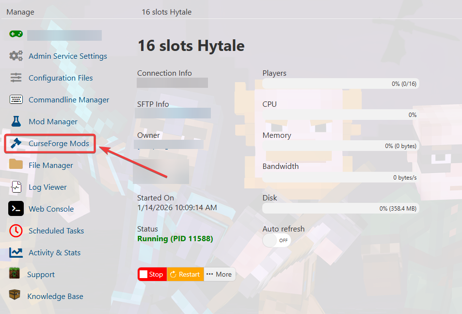 This guide will walk you through the steps to install mods on your Hytale server using the Citadel Servers game panel.
