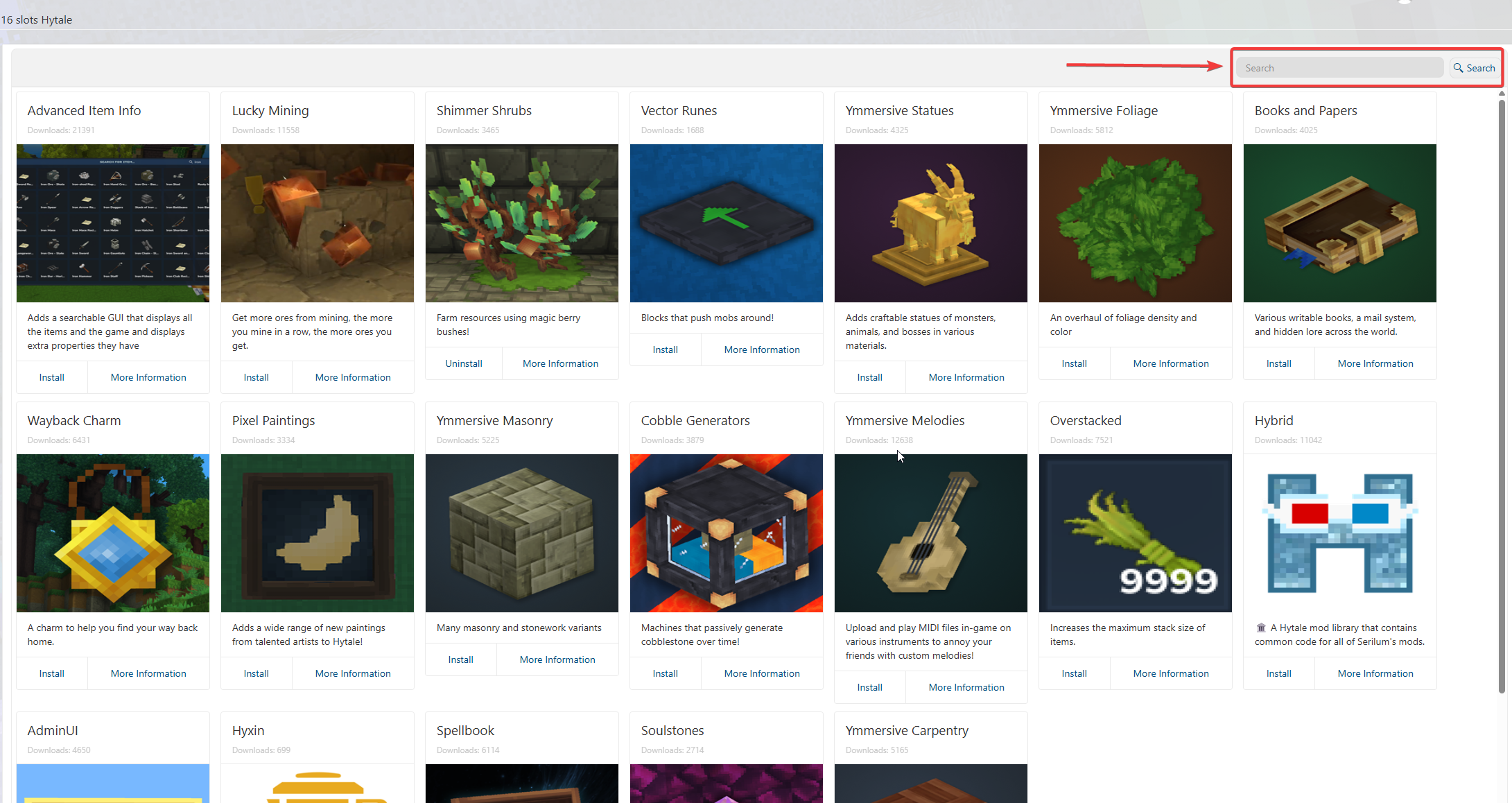 Use the search bar to find the mods you want to install.