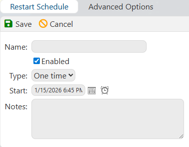 5. Once you click the New button, it will show the Restart Schedule page. Configure it based on your preferred restart schedule.