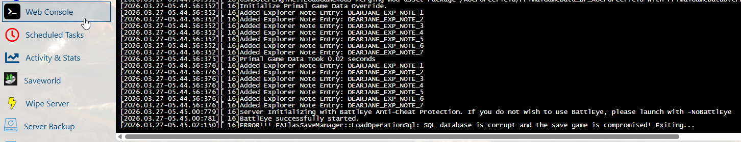3. If the web console mentions the SQL database or the save is corrupt, continue following this guide.