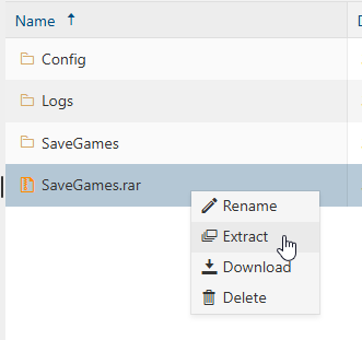 5. Once uploaded, right-click the Zip/Rar file and select Extract.