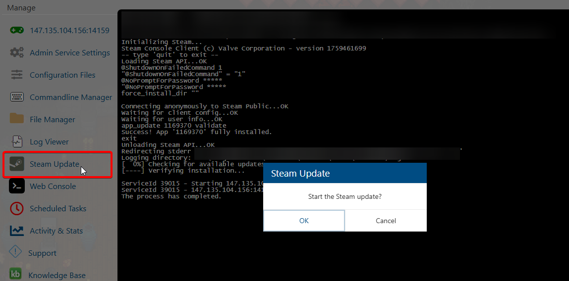 Simply execute the "Steam Update" command in the sidebar and wait for it to complete.
